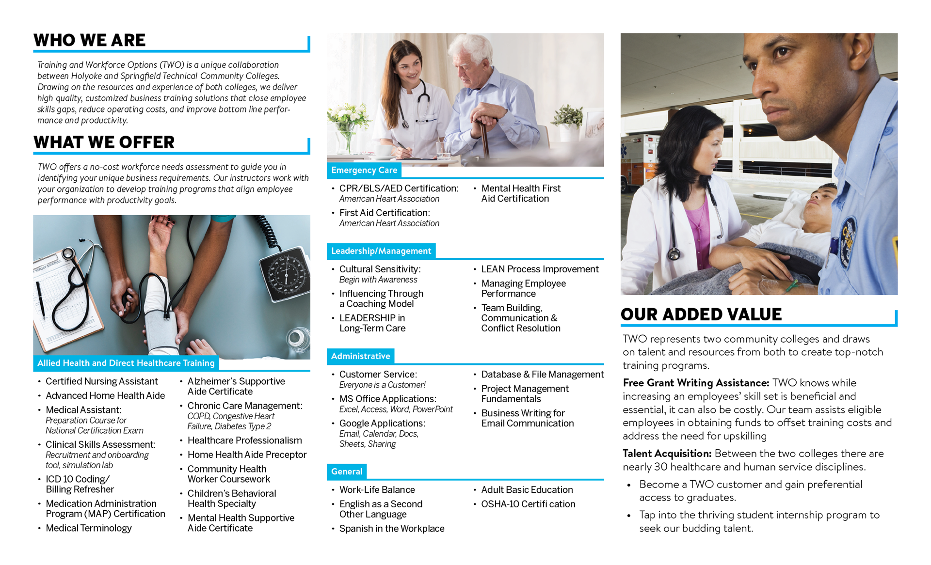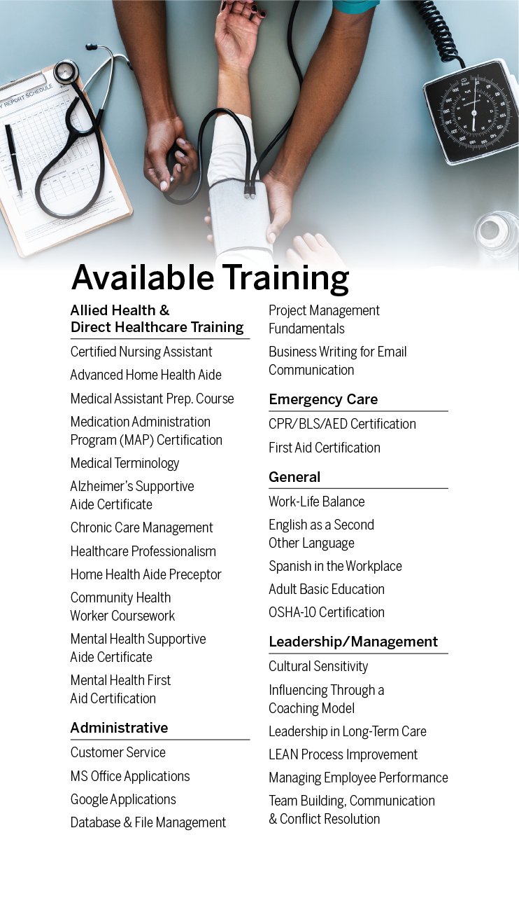 Brochure and sell card for a healthcare workforce training program.